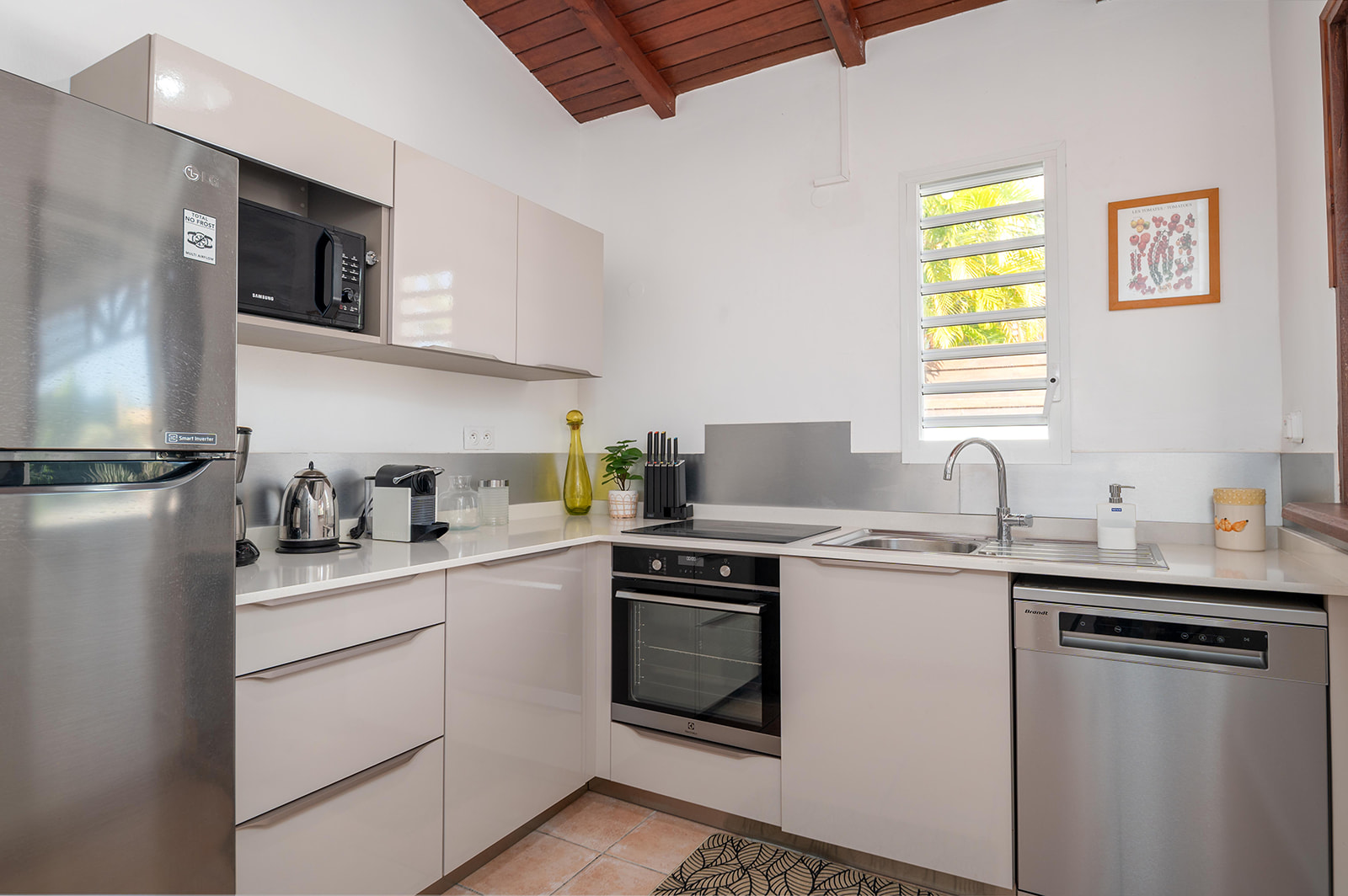 Cuisine entièrement équipée (plaques de cuisson, réfrigérateur, four, ustensiles…), avec un barbecue pour vos repas en plein air